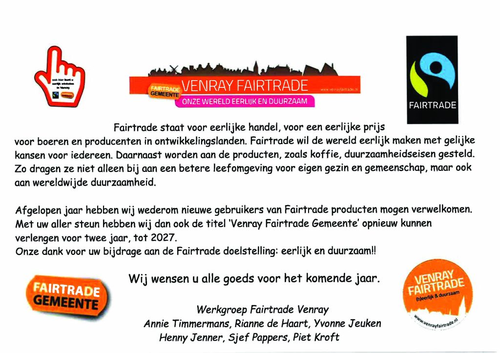 Iedereen die meegeholpen heeft aan het in stand houden van onze Fairtrade Gemeente hebben we een nieuwjaarswens gestuurd: